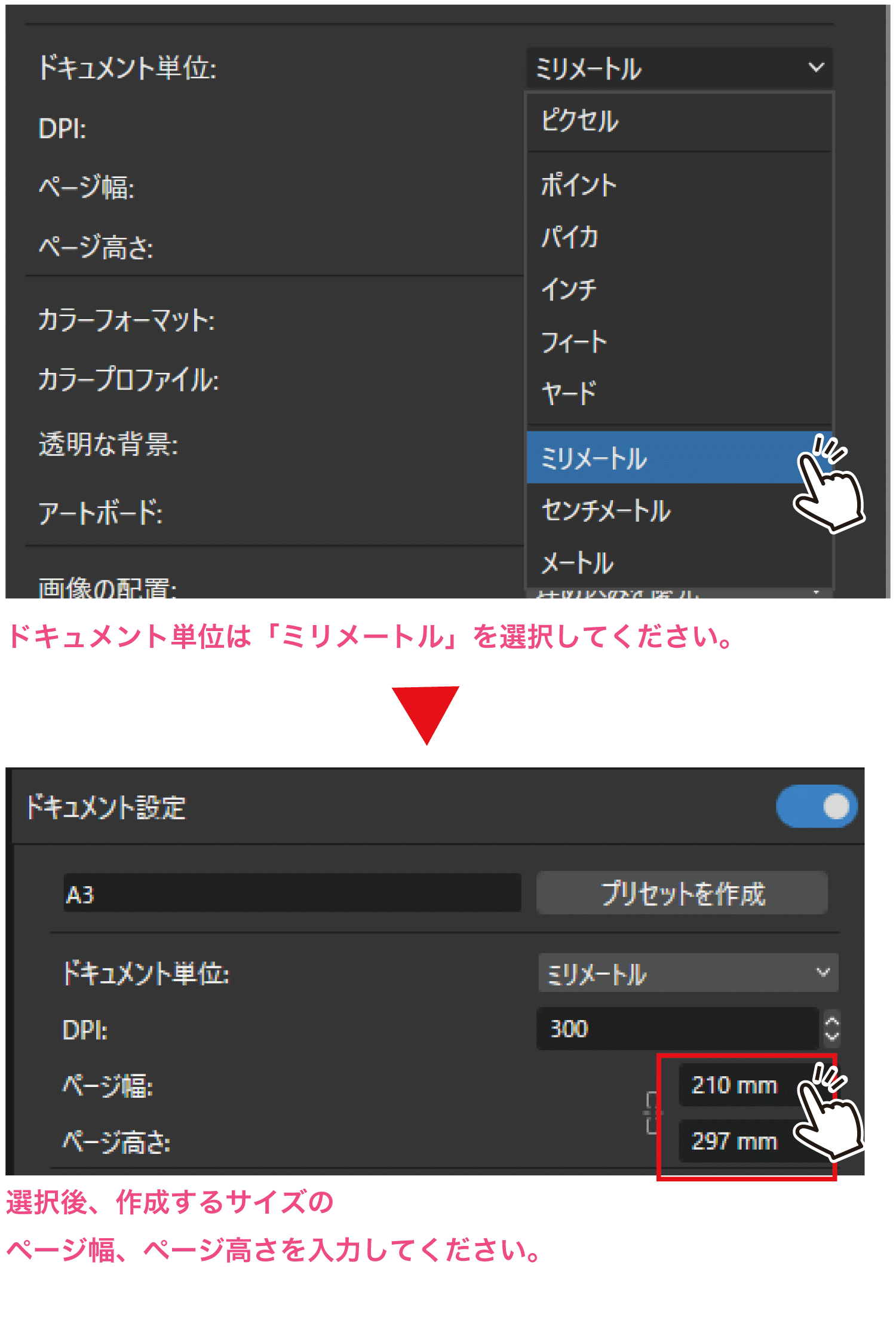 ※ DPIは300に設定してください(初期設定のままで結構です)。