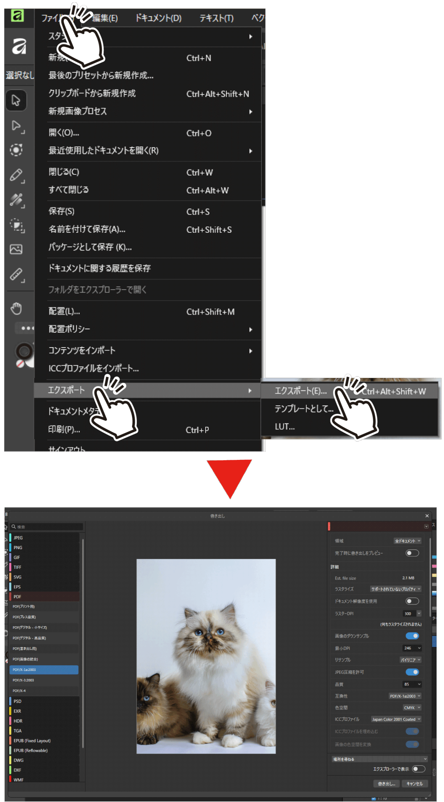 ■Affinityの保存形式(.af)でのご入稿は受け付けしていませんので、ご注意ください。