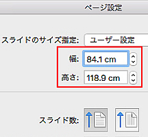 ▼デザイン→スライドのサイズ→ユーザー設定のスライドのサイズ