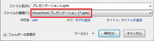 ご入稿データはファイルの種類PowerPoint プレゼンテーション形式(.pptx)で保存してください。