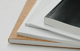 無線綴じ加工は、本文の背部分に糊をつけて、表紙で中身の本文をくるむように綴じる製本です。おすすめの用紙