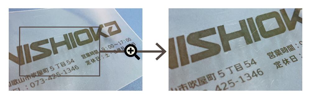 透明素材へ印刷する場合、白印刷を施すと不透明感が増し、透明部分とのコントラストをより際立たせたデザイン等が可能になります。