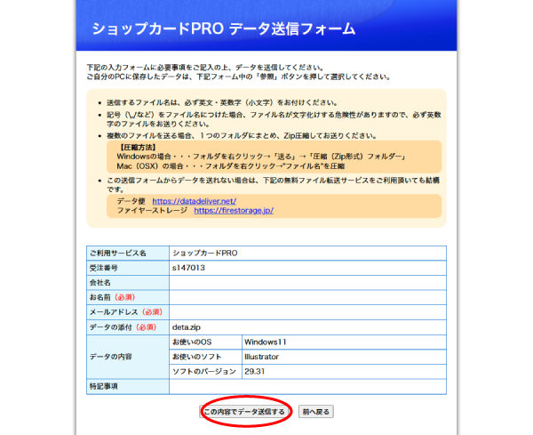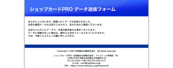 ショップカードPROデータ送信フォームからデータを送信してください。
